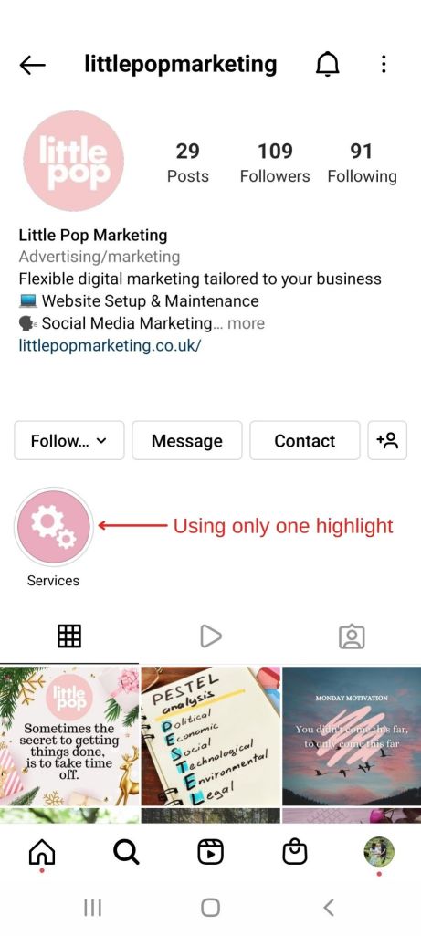 By using only one highlight, we’re not making the most of this great engaging space particularly for new followers or users who have clicked on our profile.